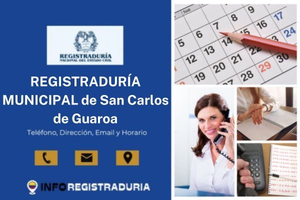 👉 Antes de acudir a la REGISTRADURÍA MUNICIPAL de San Carlos de Guaroa para informarte de los trámites que necesitas, puedes ponerte en contacto con ellos, de diferentes formas que a continuación te mostramos: