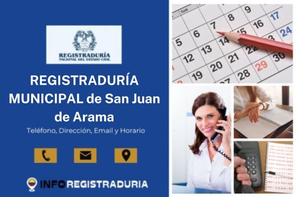 👉 Antes de acudir a la REGISTRADURÍA MUNICIPAL de San Juan de Arama para informarte de los trámites que necesitas, puedes ponerte en contacto con ellos, de diferentes formas que a continuación te mostramos: